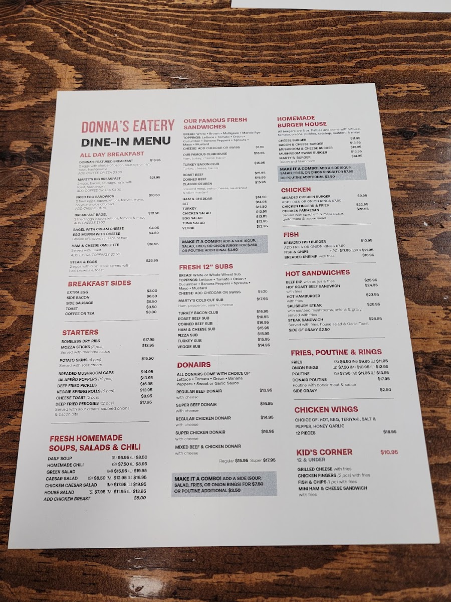 “ If you haven’t been here and drive by you are missing a fantastic meal. Marty and his staff are friendly helpful and the food is the best we have had in a long time. Portions are large, food is excellent. We had the Italian loaf with meat sauce, burger, fries and onion rings. Fries and rings were hot and crispy. Italian loaf was out of this world and the meat sauce was WOW! Hamburger was delicious and lots of lettuce tomato etc. We will be back for a donair and can’t wait to try more of the meals here. Don’t miss out and get to Donna’s Eatery. ”